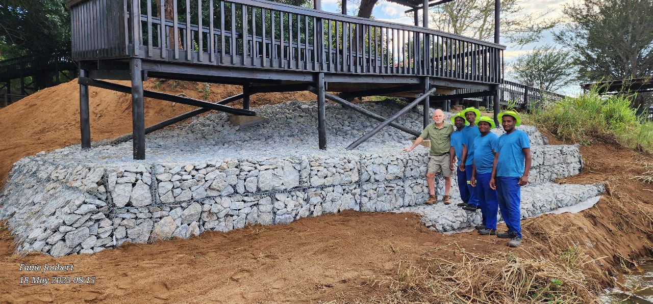 Our Nelspruit agent, Fanie Joubert, recently spearheaded this small yet intricate project. Fanie’s diligence and commitment, coupled with Gabion Baskets‘ top-quality products, resulted in an effective solution to ensure the deck’s stability.